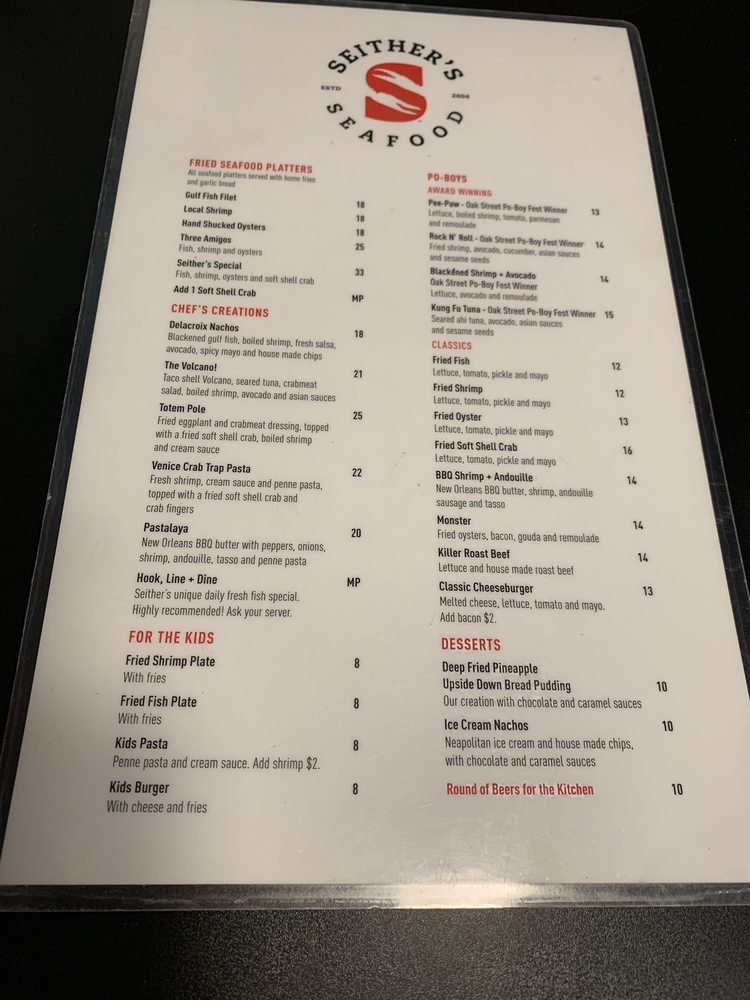 Seither's unique daily fresh fish special. Highly recommended! Ask your server